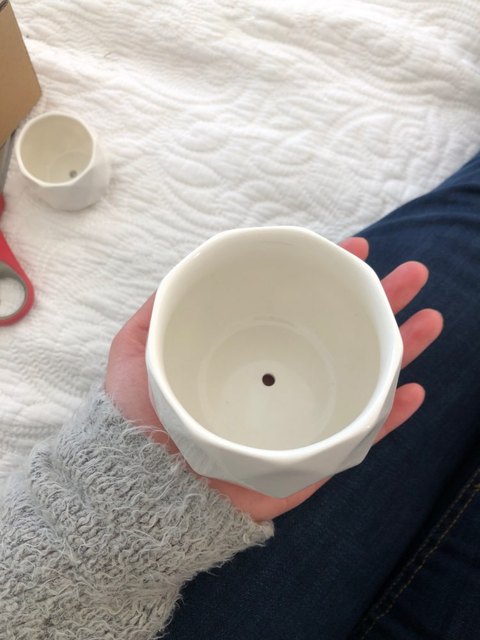 Very cute. Perfect for my plant and has a drainage hole in the bottom. Now flaws.