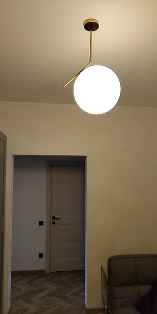 Светильник хорошего качества, оказался самым проблемным, при установке сначала висел криво, не знаю как это должно работать, но мы решили отказаться от провода, так намного лучше и нас это устроило. Интересный эффект, если выключатель со светодиодом, светильник подсвечивается даже при включенном положении, выглядит как Луна, светит как ночник. по размеру действительно 39 см в диаметре, света для коридора 10 м достаточно. Нам пока все нравится. Был доставлен очень быстро экспресс-почтой домой примерно за 2 недели. Упакован хорошо, все в целости, больше спасибо продавцу. Лампочка нужна типа свеча, другая более большая не войдет.