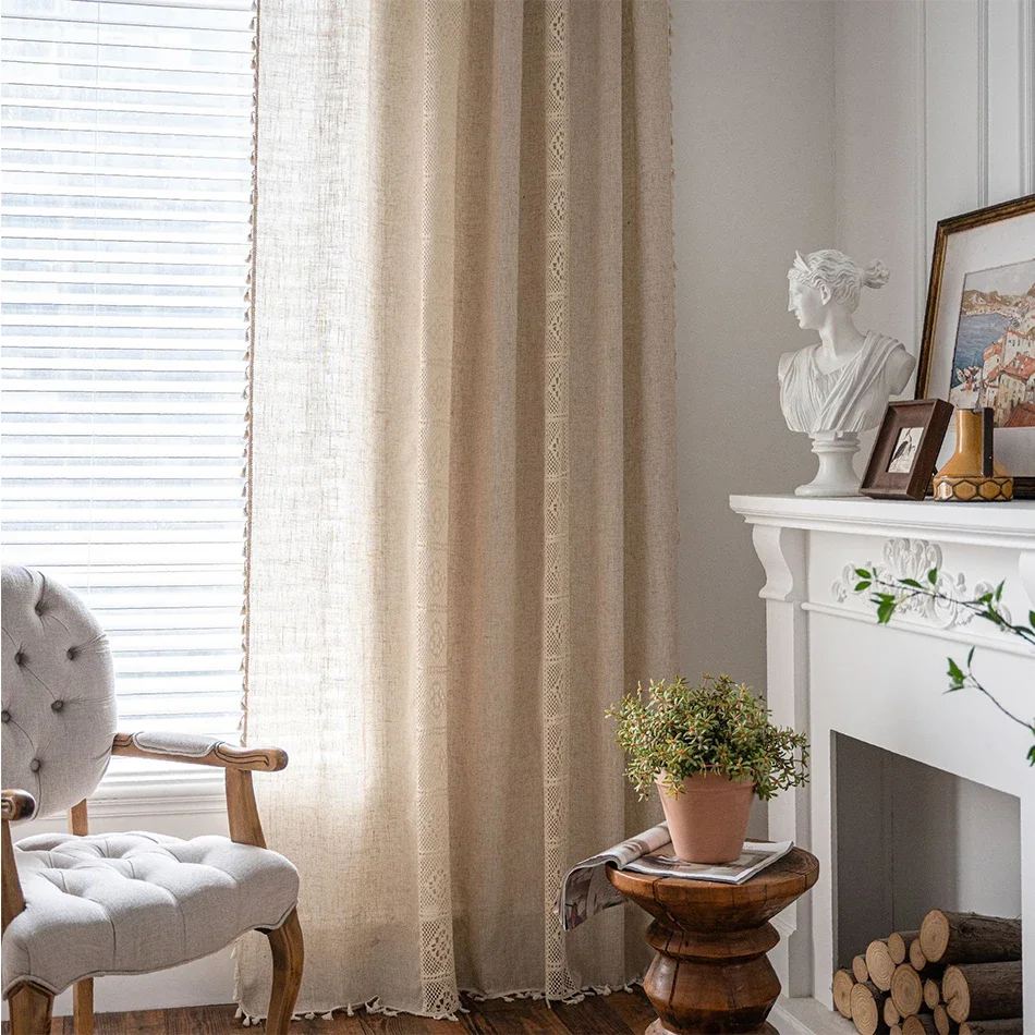 Add a soft, elegant touch to any room with this Rod-Piercing Semi-Curtain—a stylish and versatile decor piece crafted in a European and American style. Made from a high-quality cotton and linen blend, this semi-transparent curtain allows natural light to filter through while maintaining a cozy sense of privacy.